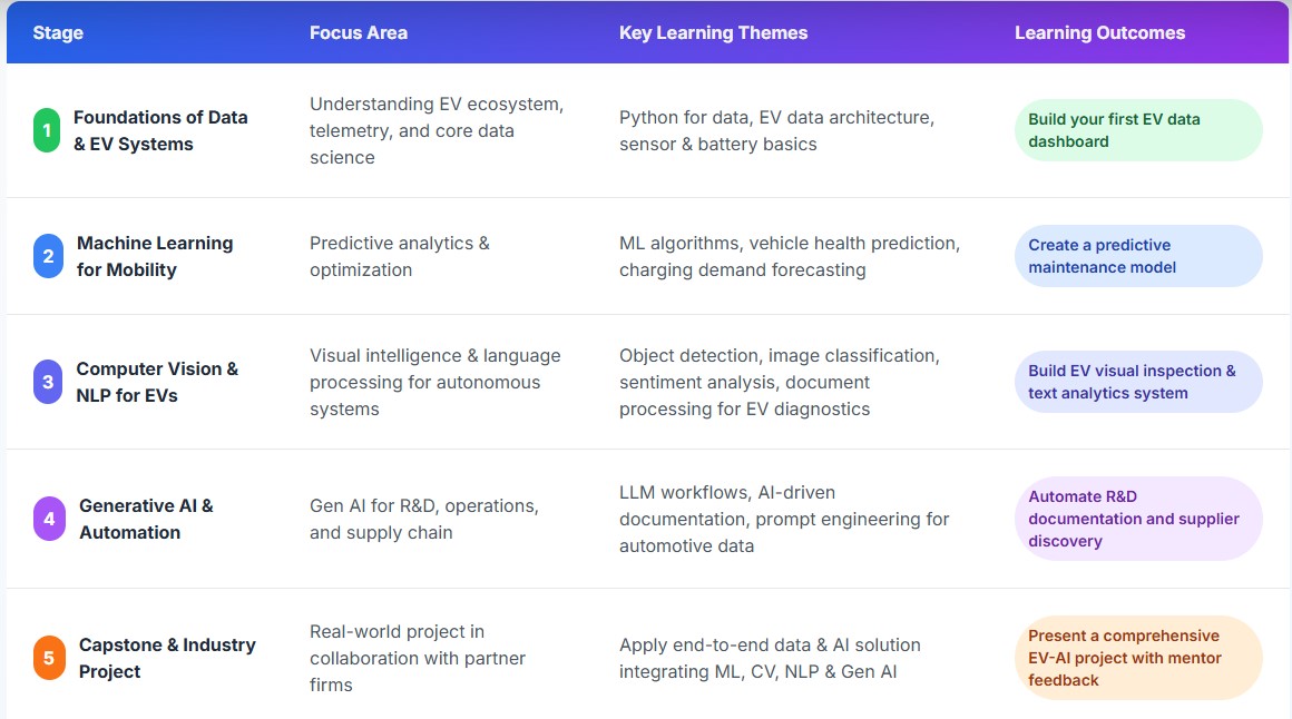 The program is built around the "convergence of Electric Vehicles (EVs) and cutting-edge Artificial Intelligence (AI)," aiming to master the data skills required for India's rapidly growing electric mobility future.